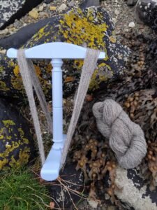 You will learn on your very own Kromski Fantasia spinning wheel. Custom painted with signature Distaff and Loom colours; the pale blue and powder blue are reminiscent of the sea and sky on the Isle of Mull. The Fantasia is a beautiful modern sleek wheel that is designed with the beginner in mind; light to treadle, and easy bobbin changes mean you can focus on just learning to spin.